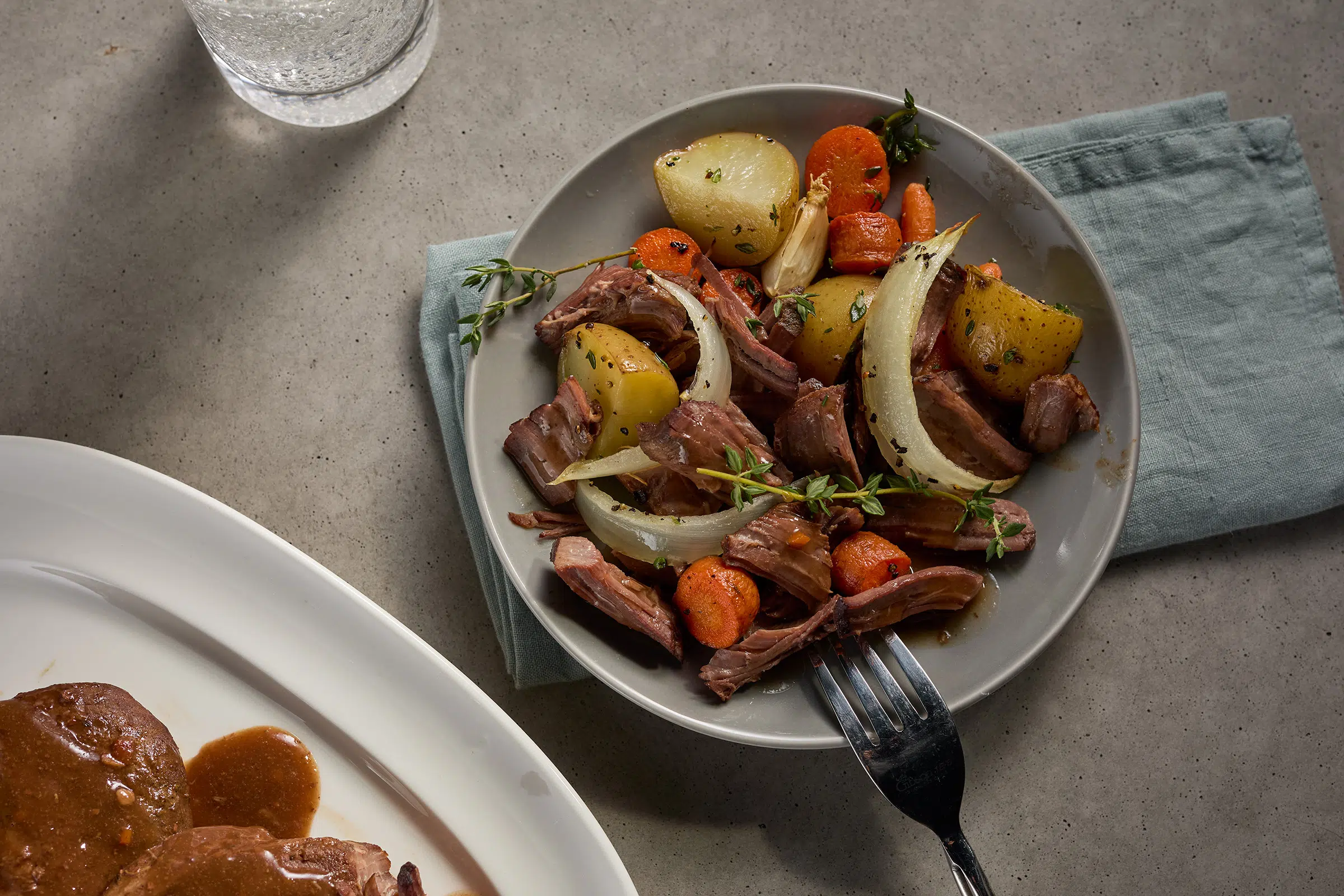 BEEF, WATER, SEASONING (MODIFIED CORN STARCH, HYDROLYZED SOY PROTEIN, MALTODEXTRIN, SUGAR, BEEF STOCK, CARAMEL COLOR [SULFITES], NATURAL FLAVOR, YEAST EXTRACT, DEHYDRATED ONION, XANTHAN GUM, DEHYDRATED GARLIC, SPICE, SPICE EXTRACTIVE), CONTAINS LESS THAN 2% OF SEASONING (SALT, DEXTROSE, MODIFIED CORN STARCH, HYDROLYZED SOY PROTEIN, SPICES [INCLUDING PARSLEY], CARAMEL COLOR POWDER, NATURAL BEEF FLAVOR [BEEF STOCK, AUTOLYZED YEAST EXTRACT], DEHYDRATED ONION AND GARLIC, SUGAR, NATURAL FLAVOR, XANTHAN GUM, SPICE EXTRACTIVE).