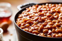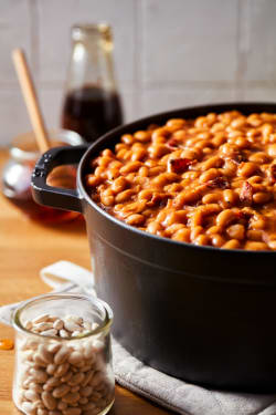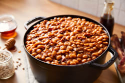 GREAT NORTHERN BEANS (GREAT NORTHERN BEANS, WATER. SALT, CALCIUM CHLORIDE), KETCHUP (TOMATO CONCENTRATE, DISTILLED VINEGAR. HIGH FRUCTOSE CORN SYRUP, CORN SYRUP, SALT, SPICE, ONION POWDER. NATURAL FLAVORING), BROWN SUGAR (SUGAR, INVERT SUGAR. MOLASSES), ONIONS, HONEY, CONTAINS LESS THAN 2% OF FULLY COOKED BACON BITS WITH SMOKE FLAVOR ADDED (BACON BITS [CURED WITH WATER. SALT, SUGAR, SODIUM PHOSPHATES, SODIUM ERYTHORBATE, SODIUM NITRITE]. SMOKE FLAVOR [MAY CONTAIN DEXTROSE, POTASSIUM CHLORIDE]), RENDERED BACON FAT (CURED WITH WATER, SALT. SUGAR. SODIUM ERYTHORBA TE. SODIUM NITRITE. SMOKE FLAVORING, DEXTROSE, BROWN SUGAR, SODIUM PHOSPHATE, POTASSIUM CHLORIDE, SODIUM DIACETATE. FLAVORING, HONEY, [TBHQ AND CITRIC ACID ADDED AS STABILIZERS]), SUGAR. BUTTER (PASTEURIZED CREAM. SALT), MOLASSES, SALT, MODIFIED CORN STARCH, MUSTARD (DISTILLED VINEGAR. MUSTARD SEED, SALT. TURMERIC, SPICES). CARAMELIZED SUGAR (CONTAINS POTATO MAL TODEXTRIN), SPICES.