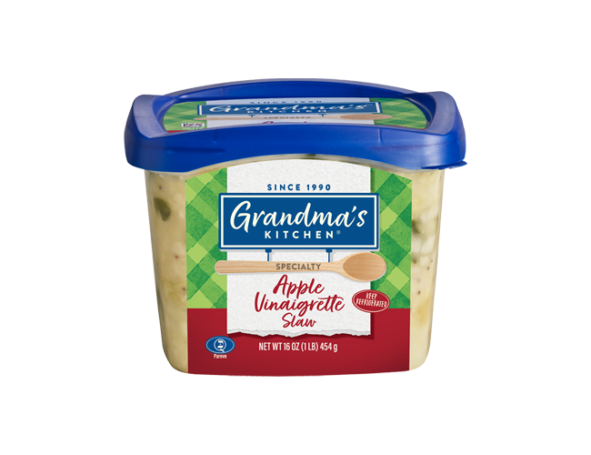 CABBAGE, SUGAR, APPLE CIDER VINEGAR, SOYBEAN OIL, APPLES (APPLES, SALT, ASCORBIC ACID, CITRIC ACID), CONTAINS LESS THAN 2% OF GREEN ONIONS, PEA FIBER, SALT, ERYTHORBIC ACID (TO RETAIN COLOR), POPPY SEED, XANTHAN GUM, SPICES.