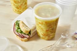 Place the product in a steam table or soup warmer pan and cover. Set to medium (depending on your model) and heat for 25-30 minutes for broth soups, approximately 35-40 minutes for thicker soups, stirring occasionally until heated through or internal temp reaches 165°F. Let stand for 1-2 minutes before serving. Enjoy!