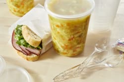 Remove the product from its packaging and transfer it to a microwave-safe bowl. Cover loosely with a microwave-safe lid or paper towel, leaving a small gap for steam to escape. Heat on high for 3-5 minutes for broth soups, 4-7 minutes for thicker soups, stirring halfway through. Let stand for 1-2 minutes before serving. Enjoy!