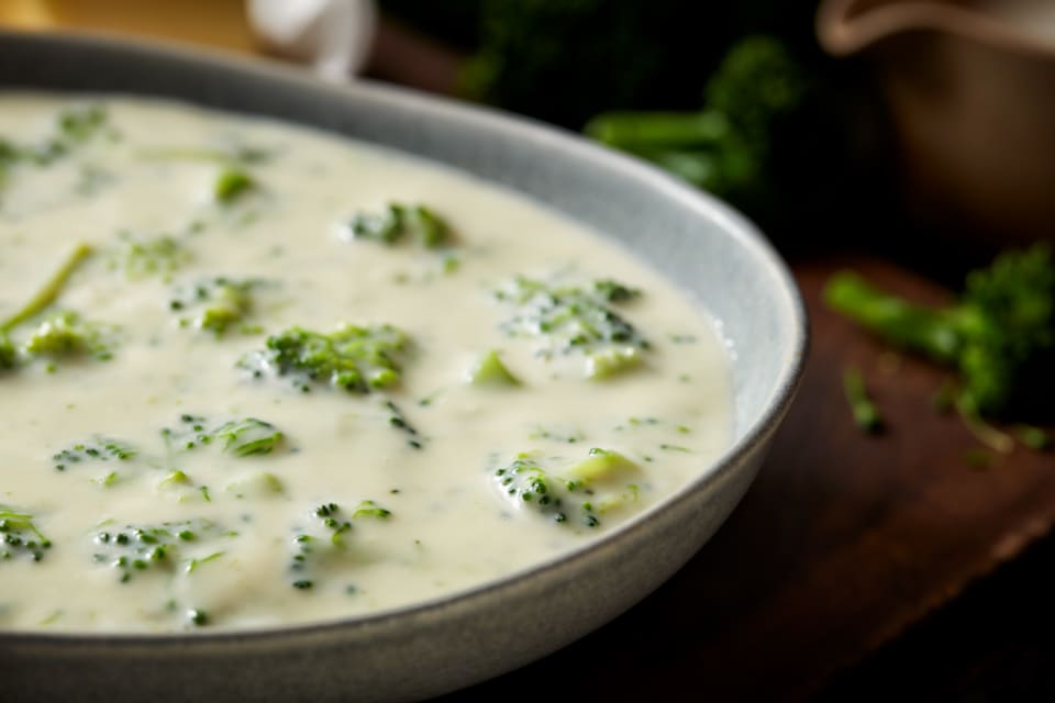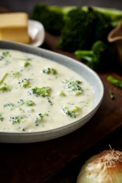 MILK (MILK, VITAMIN D3 ADDED), WATER, BROCCOLI, WHIPPING CREAM, ONIONS, MODIFIED CORN STARCH, CONTAINS LESS THAN 2% OF BUTTER (CREAM, SALT), CHICKEN BASE (COOKED CHICKEN, SALT, CHICKEN FAT, SUGAR, MALTODEXTRIN [FROM CORN], HYDROLYZED WHEAT GLUTEN, NATURAL FLAVORING, POTATO STARCH, YEAST EXTRACT), SALT, GRANULATED ONION, GRANULATED GARLIC, NISIN PREPARATION (NISIN [PRESERVATIVE], SALT, ROSEMARY EXTRACT), SPICES, XANTHAN GUM.