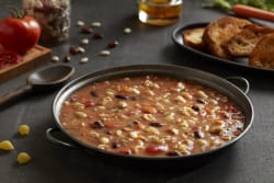 Place the product in a steam table or soup warmer pan and cover. Set to medium (depending on your model) and heat for 25-30 minutes for broth soups, approximately 35-40 minutes for thicker soups, stirring occasionally until heated through or internal temp reaches 165°F. Let stand for 1-2 minutes before serving. Enjoy!