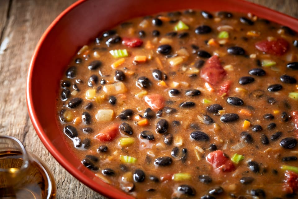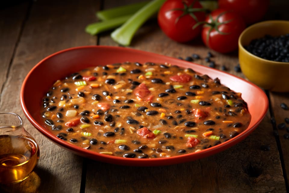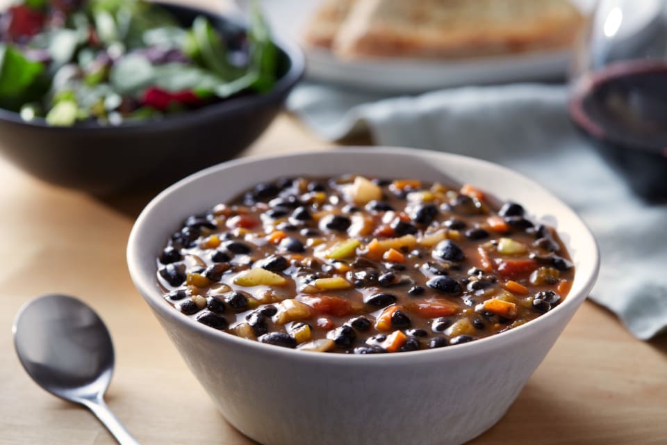 BLACK BEANS (BLACK BEANS, WATER, SALT, CALCIUM CHLORIDE, FERROUS GLUCONATE), WATER, ONIONS, CELERY, TOMATOES (DICED TOMATOES, TOMATO JUICE, SALT, CALCIUM CHLORIDE, CITRIC ACID), CONTAINS LESS THAN 2% OF VEGETABLE BASE (COOKED VEGETABLES [CARROT, ONION, CELERY], SALT, SUGAR, CORN OIL, POTATO FLOUR, NATURAL FLAVOR, MALTODEXTRIN, CARROT POWDER), TOMATO PASTE, SOYBEAN OIL, CARROTS, GREEN BELL PEPPERS, MODIFIED CORN STARCH, GARLIC, SPICES, CILANTRO, SALT, SHERRY WINE (SHERRY WINE, SALT, POTASSIUM SORBATE [PRESERVATIVE], POTASSIUM METABISULFITE [ADDED TO PROTECT COLOR]), GRANULATED GARLIC.