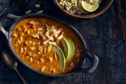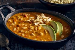 GREAT NORTHERN BEANS (BEANS, WATER, SALT, CALCIUM CHLORIDE), CHILE PEPPERS (GREEN CHILES, WATER, SALT, CITRIC ACID, CALCIUM CHLORIDE), WATER, COOKED WHITE MEAT CHICKEN (CHICKEN, WATER, POTASSIUM LACTATE, SODIUM TRIPOLYPHOSPHATE, SALT), ONIONS, CARROTS, RED BELL PEPPERS, CHICKEN FLAVORED SEASONING (SALT, DEXTROSE, BEEF FAT, MALTODEXTRIN, CANOLA OIL, CHICKEN FAT, CORN STARCH, NATURAL FLAVORING [INCLUDING ONION], CHICKEN, HYDROLYZED SOY PROTEIN, DISODIUM INOSINATE/DISODIUM GUANYLATE, TURMERIC, PARSLEY), CONTAINS LESS THAN 2% OF CANOLA OIL, JALAPENO PEPPERS, CHILI POWDER (CHILI PEPPER, SPICES, SALT, DEHYDRATED GARLIC), SALT, SPICES.